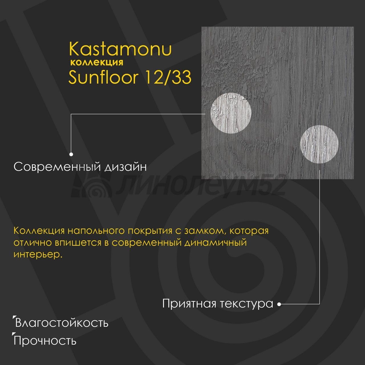 | Дополнительные свойства: | Влагостойкий / Реалистичное тиснение |