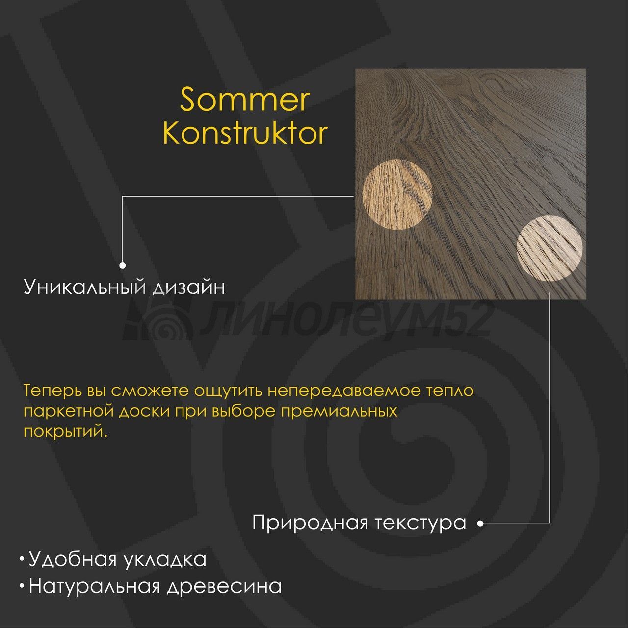 | Уникальные свойства: | Подходит для пола с подогревом +27°С / Продажа товара отпускается в упаковках / Экономичный выбор для покупателей |