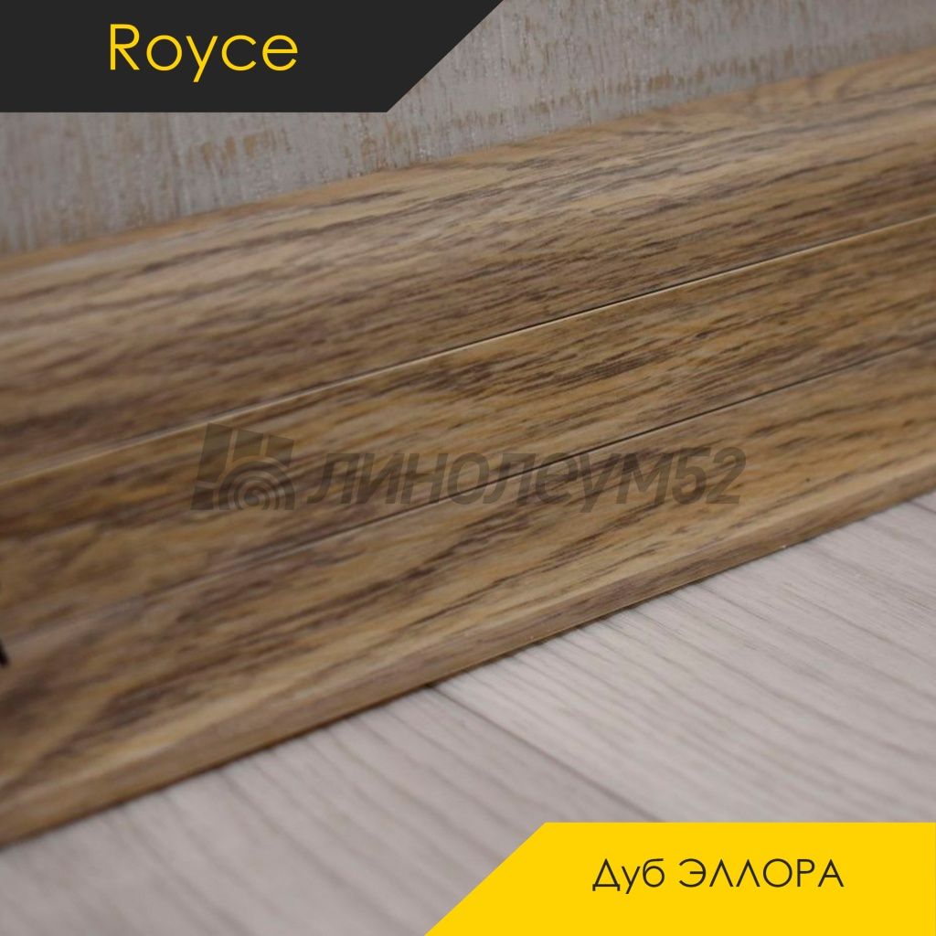 Плинтус - ROYCE 58 / Royce Плинтус ROYCE 58 - Дуб ЭЛЛОРА 809 / ПВХ от Royce Коллекция:: Classic - Royce, Торговая марка:: Royce, Тип товара:: Плинтус - Напольный, Применение на покрытие:: Универсальное, Морозостойкость:: Отсутствует, Ширина:: 0.022, Длина:: 2.200, Цветовая гамма:: Коричневый, Вид имитируемой древесины:: Дуб - ТЁМНЫЙ, Допустимые зоны применения:: Жилые помещения / Кабинеты, Дополнительные товары: Наружный угол под плинтус - ROYCE CLASSIC 58 / ФУРНИТУРА / Внутренний угол под плинтус - ROYCE CLASSIC 58 / ФУРНИТУРА / Соединение под плинтус - ROYCE CLASSIC 58 / ФУРНИТУРА / Заглушки (пара) под плинтус - ROYCE CLASSIC 58 / ФУРНИТУРА, Страна производитель:: Россия, Класс пожарной опасности:: КМ5, Срок службы:: 20 лет, Высота:: 0.058, Кабель-канал:: Да, Уплотнитель по краю:: Да, Материал:: ПВХ, Уникальные свойства:: Крепёж в комплекте не идёт / Маскирует неровности по стенам / Простота монтажных работ / Уникальный стиль / Экономичный выбор для покупателей,