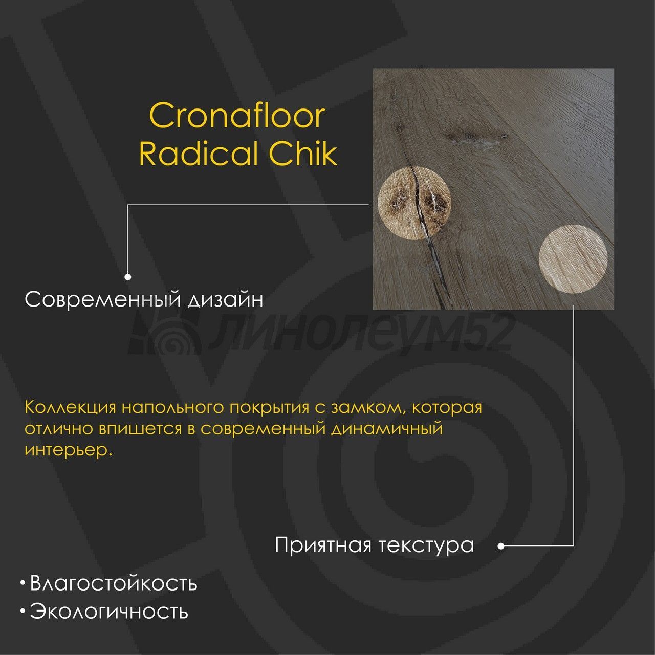 Водостойкий виниловый ламинат на минерально-полимерной основе "SPC" от бренда "CRONAFLOOR" ворвался в нашу жизнь. Классический стиль доски в сочетании с новейшими характеристиками не оставят без внимания наших покупателей. Топовые линейки из серии "WOOD" и "NANO" можно изучить на сайте "ЛИНОЛЕУМ52" или в одном из наших магазинов. Также обращаем ваше внимание, что данное покрытие обладает акустическим комфортом, а также на 100% влагостойкостью. Простота укладки и уборки, также не на последнем месте в списке преимуществ у данного покрытия. Если же у вас ещё остались вопросы, то наши специалисты с лёгкостью помогут найти ответы на каждый из них...