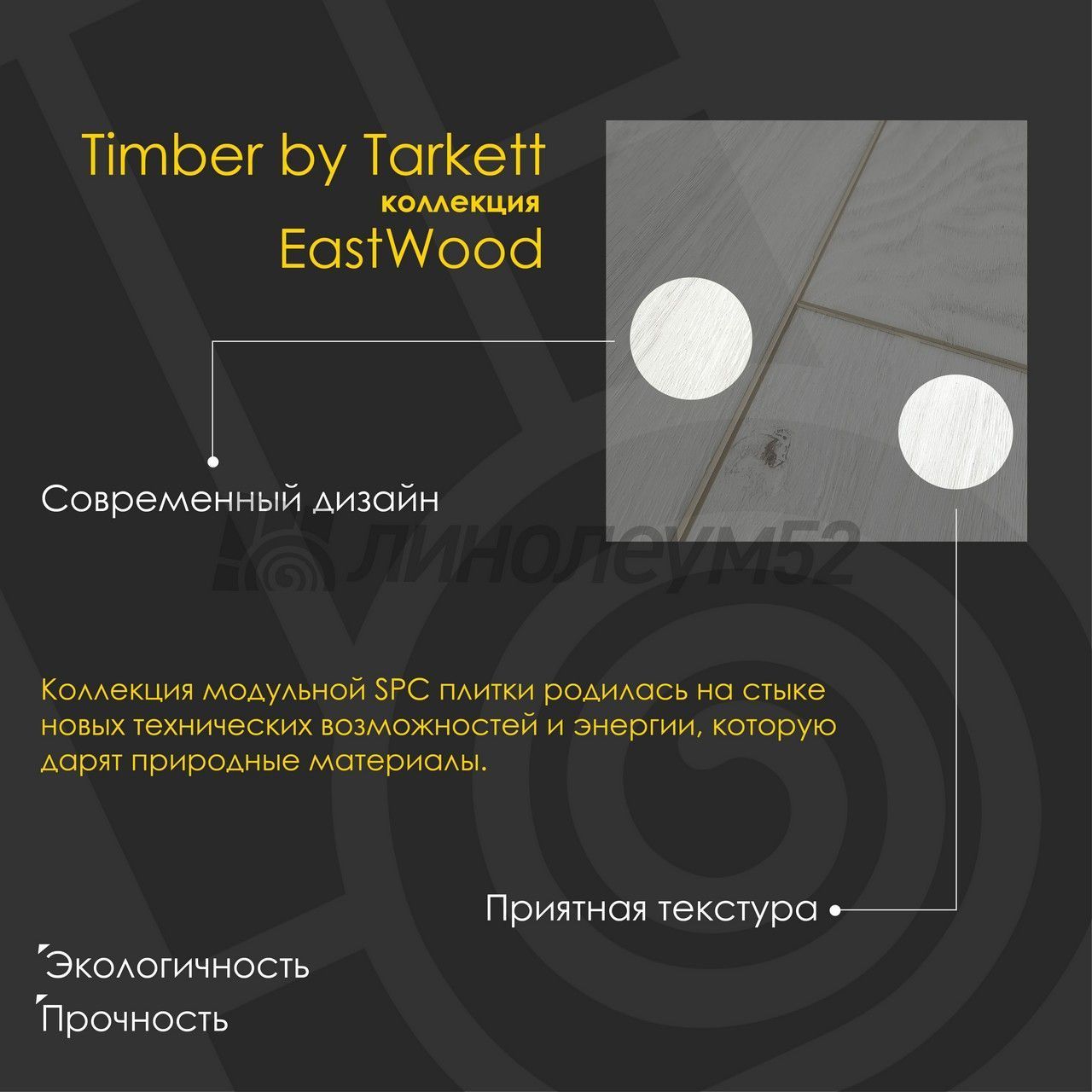 Уникальные свойства: Подходит для пола с подогревом +27°С / Уникальный стиль / Экологичность