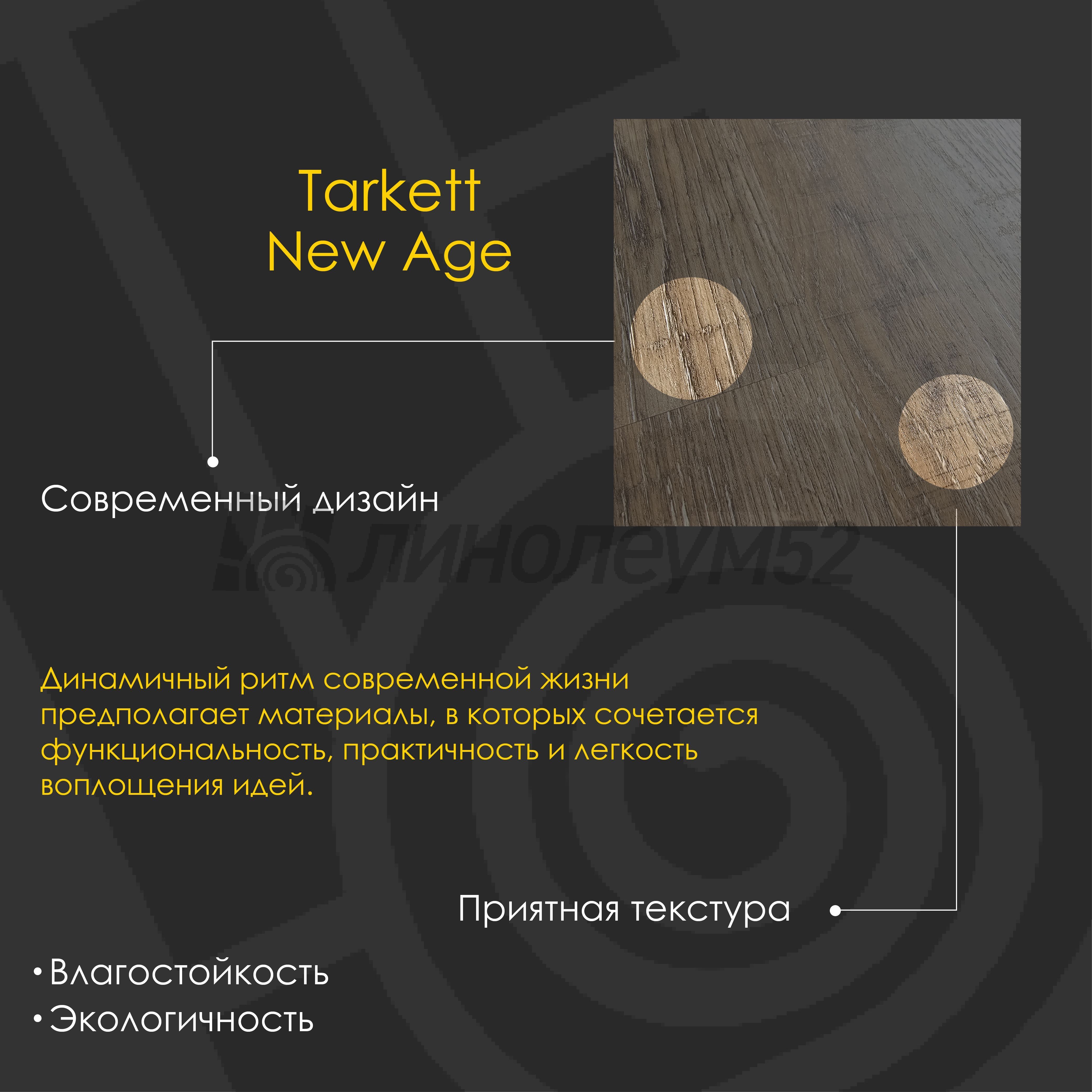 TARKETT - NEW AGE / 914.4*152.4*2.1 Виниловая плитка - NEW AGE / ENIGMA от Tarkett Коллекция:: New Age - LVT, Торговая марка:: Tarkett, Тип товара:: Виниловая плитка - LVT, Применение на покрытие:: Универсальное, Морозостойкость:: Отсутствует, Класс применения:: 32, Толщина: 2.10, Ширина:: 152.4, Длина:: 914.4, Допустимые зоны применения:: Выставочный стиль / Жилые помещения / Кабинеты / Торговые помещения, Страна производитель:: Россия, Класс пожарной опасности:: КМ5, Срок службы:: 15 лет, Способ укладки:: Диагональная / Прямая, Фаска:: Отсутствует, Тип укладки:: Посадка - НА КЛЕЙ, Тип покрытия: LVT - гибкая, клеевая, Уникальные свойства:: Подходит для пола с подогревом +27°С / Продажа товара отпускается в упаковках / Уникальный стиль / Экологичность / Экономичный выбор для покупателей,