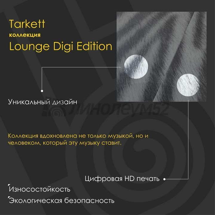 Коллекция "LOUNGE DIGI EDITION" вдохновлена не только музыкой, но и человеком, который эту музыку ставит. Диджей создает атмосферу и настроение, заставляющее людей расслабляться и танцевать. Именно поэтому все дизайны в коллекции названы в честь известных диджеев. При создании коллекции применена технология цифровой печати, которая позволяет создавать уникальные дизайны "ART VINYL". Коллекция "LOUNGE DIGI EDITION" представлена четырьмя сетами: абстракция, текстиль, природные материалы и экзотика. Каждый сет создан наполнять пространство индивидуальностью и стилем. "ART VINYL" - это креативный пол, который не оставит никого равнодушным. Если у вас остались вопросы или есть сомнения, то наши специалисты с радостью помогут найти ответы на каждый из них...